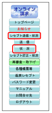 ⑰「レセプト送信・状況」より、「状況」を選択します。