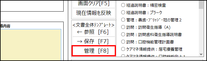 ①[診療文書]画面で、[管理]ボタンをクリックします。