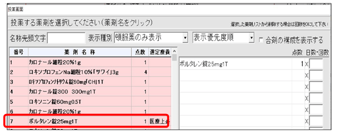 ⑤薬剤名を検索します。その際に「○○(選)」とついた項目を選び、OKします。