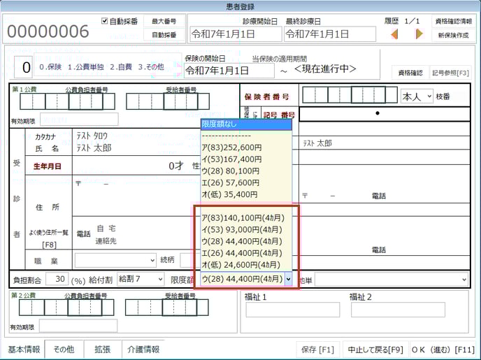 よくある原因:患者登録の限度額で(4か月)の区分が選択されている。