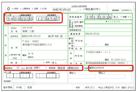 ⑨再度患者様の患者登録を開き、地単欄に「難病〇〇円/月」の候補があるかを確認し、