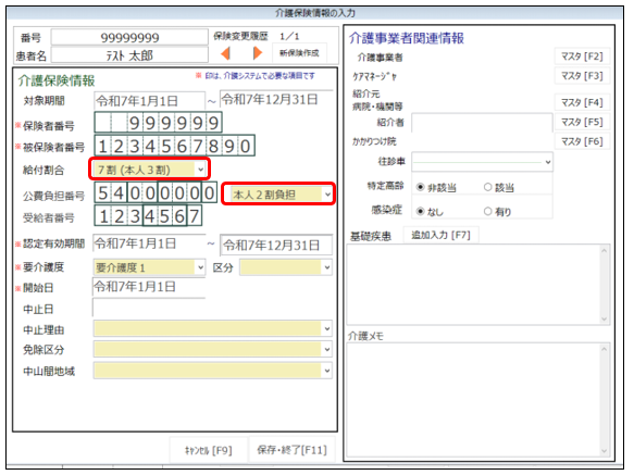 ②公費横のボックス:空欄にすると、介護給付割合の本人負担と同じ割合で金額が