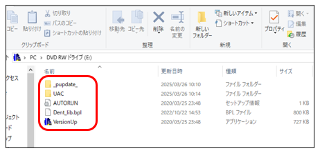 ③中に入っているファイルの中から、「VersionUp」をダブルクリックすると、バージョンアップが開始されます。